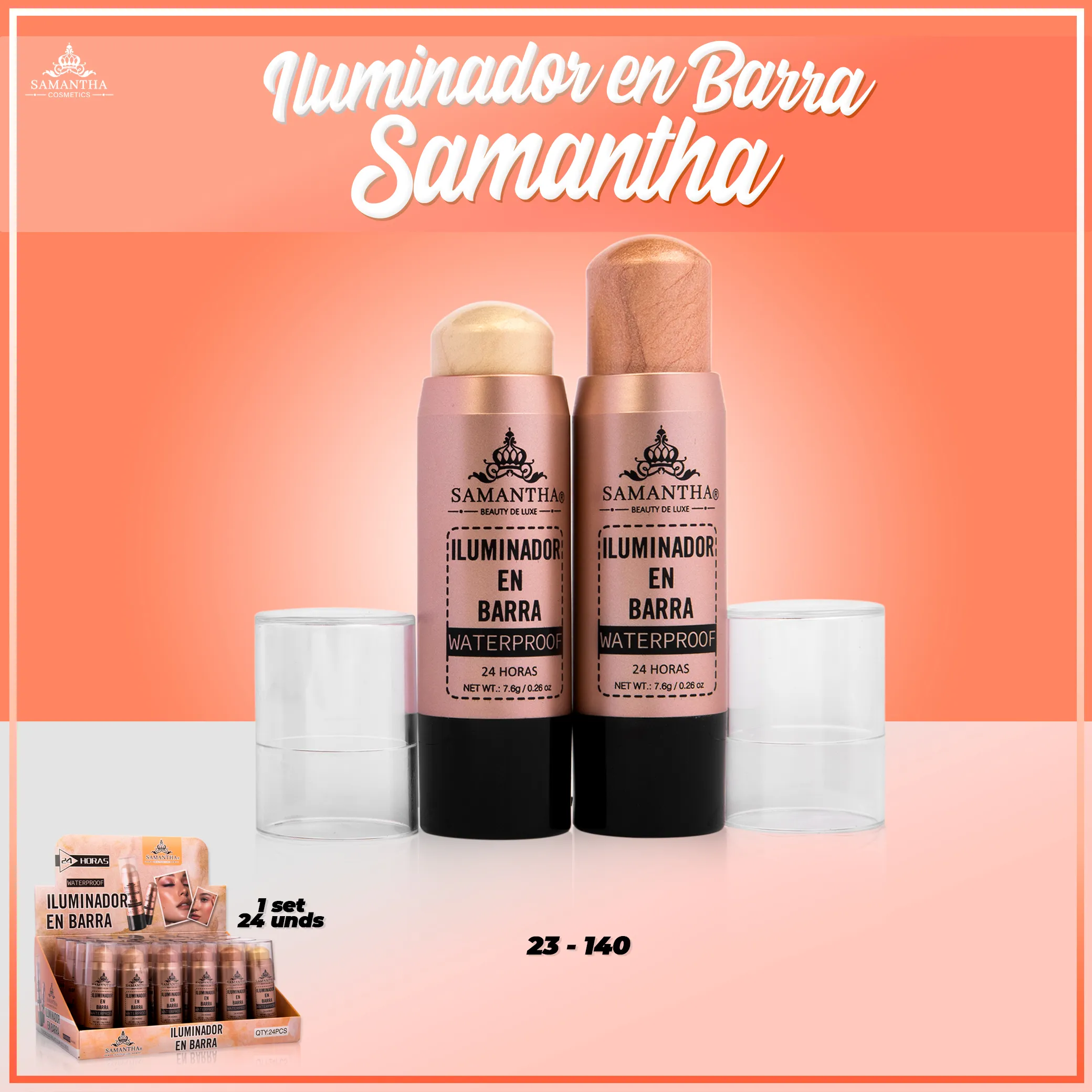 Ilumina tu rostro con el increíble Iluminador en Barra Samantha X24 PCS